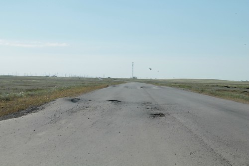 Опять же, в России это небольшой участок дороги, чаще всего асфальтированный (либо укатанный, накрайняк выровненный грейдером), в обход какого-то локального ремонта. Но мы не в России! Мы в Астане! Точнее — едем в неё. Волею судеб в столицу Азии ведет четыре дороги, с каждой стороны света и ни по одной из них невозможно въехать без потерь. Только с севера порядка 180 км дорога и та дальше до Петропавловска аналогичная. Что такое «объезд» по-казахски? Это абсолютно неподготовленный многокилометровый съезд с бывшей магистрали на совершенно неподготовленную почву, разгон на которой хотя бы до 5 км/ч чреват разрушающим ударом в днище или колесо. Кроме того, нельзя забывать, что ты в степи — пыль стоит столбом, видимость не больше десятка метров, огромные кочки бросают на тебя встречные машины, сзади поджимают местные (они-то привыкшие уже), со всех сторон фуры, разогнаться и убежать из этого ада никак… Наконец выезд на трассу. Можно глубоко вдохнуть, выдохнуть, расслабить пальцы на руле… Но рано радоваться — через полкилометра снова объезд! И снова в преисподню… если объезд по степи, то просто ни черта не видать и катишь на ощупь, главное избежать встречного контакта, а если по бывшему болоту (т.е. по кочкам), то акрамя пыли еще и машину колбасит как неваляшку, тут уже не до встречных — как бы самому не перевернуться… Такая дорога вас ждет за Экибастузом (трасса Павлодар-Астана, примерно 100 км), сразу за Темиртау (трасса Караганда-Астана, порядка 150 км) и отрезок Кокшетау-Щукинск (трасса Петропавловск-Астана, около 100 км), правда от Щукинска до Астаны (170 км) проложен самый настоящий европейский автобан, но он тоже с хитринкой… однако о нём позже. Единственный шанец преодолеть такую дорогу без потерь — это без конца возносить хвалы Аллаху, всем известным богам, все известные молитвы и материть себя на чем свет, что шайтан дернул тебя поехать в этом направлении… и покрепче… ну как в песне — крепче за баранку держись, шофер.