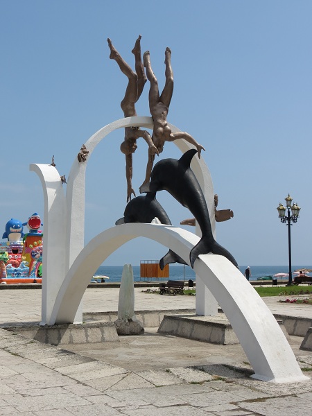 От «Великого Питиунта» мы направились на набережную к знаменитой фигуре «Ныряльщики». Кстати, вход на территорию прибрежной зоны платный.