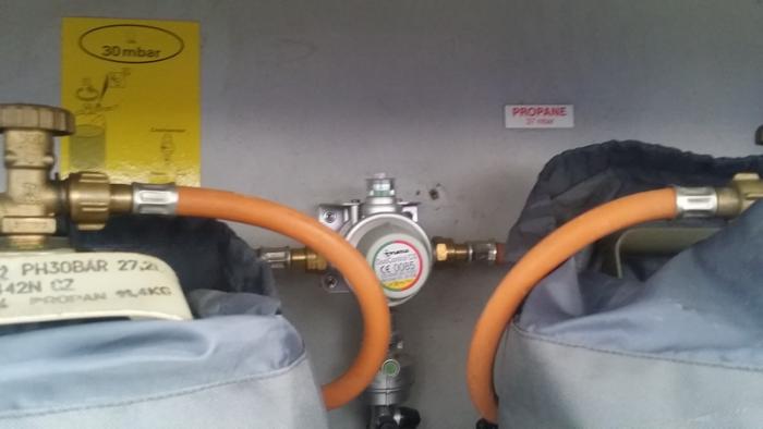 — Два немецких газовых баллона по 27 литров с переключателем с одного баллона на другой — удобно!