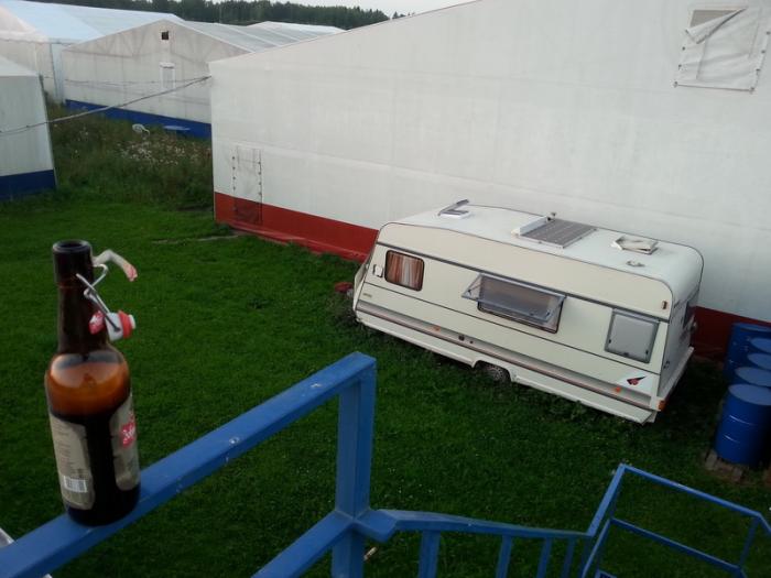 Старенький уютненький домик! С ним я практически никуда не ездил, а стоит он у меня на аэродроме в качестве «недвижимости». И вот с хорошим моим товарищем мы его «зарядили» ТАК, что мама не горюй; чего в нём только нет! Живи — не хочу-) Нафарширован он более чем, итак: