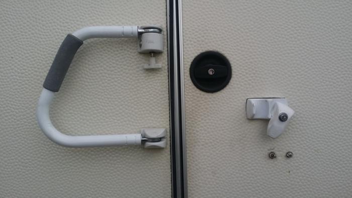 — Поручень, запирающий входную дверь. Надёжная защита от нежданных гостей. Когда прицеп до своего перебазирования на аэродром стоял во дворе московского дома, никто не проникал, никто не покушался-)