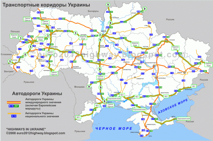 Карта европейских маршрутов автодорог в Украине Протяженность трассы на территории Украины — 62, 5 км.