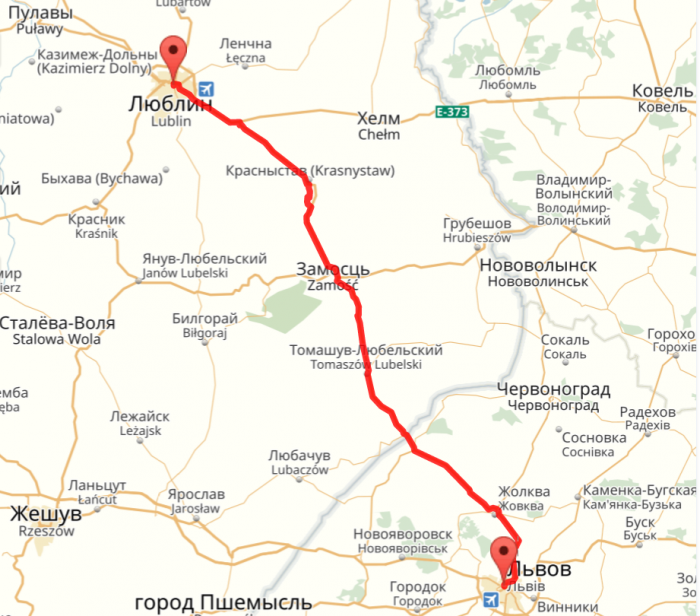 Расстояние от Люблина до Львова: 215 км; Время пути: 4:10
