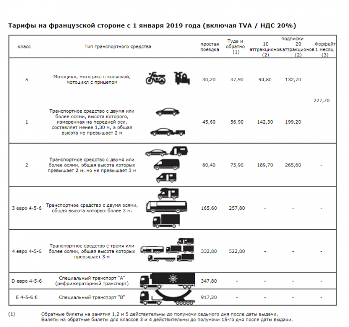 С автомашин за проезд через и в одну сторону берётся 43,50 Euro, туда и обратно 54,30 Euro.
