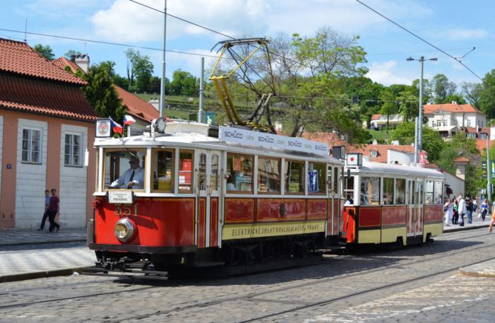 Рядом проходит маршрут, где периодически курсирует старый трамвай