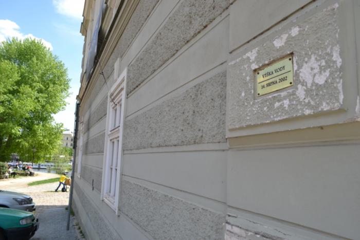 По этому фото можно оценить уровень воды во время наводнения в 2002 году. На доме установили памятную табличку