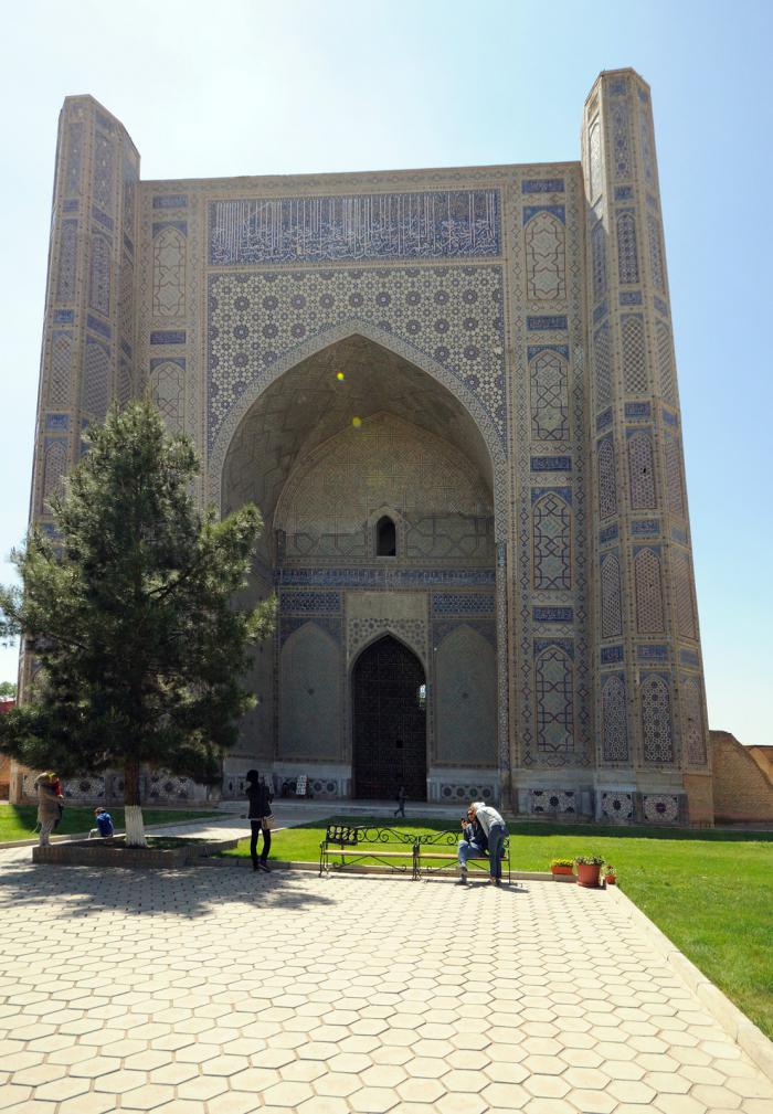 Шахрисабз – малая родина эмира Тимура, величайшего полководца всех времен и народов. Завоевал всё, что пытался. Однако Чингисхана, например, знает каждый школьник, а вот о Тимуре имела представление лишь четверть нашей группы. А тех же татар-монголов в лице Тохтамыша он гонял по степи так, что мало не покажется. При этом чингизидом он не был, то есть в ханы не годился, что впоследствии исправил грамотной женитьбой (вернее в гареме оказалась чингизидка Биби-Ханум).