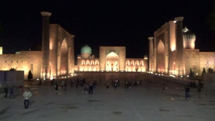 Регистан и вправду подсвечивался. Скромненько.
