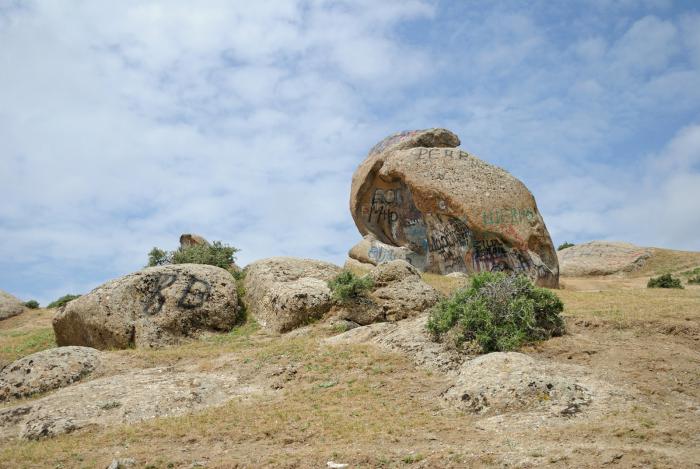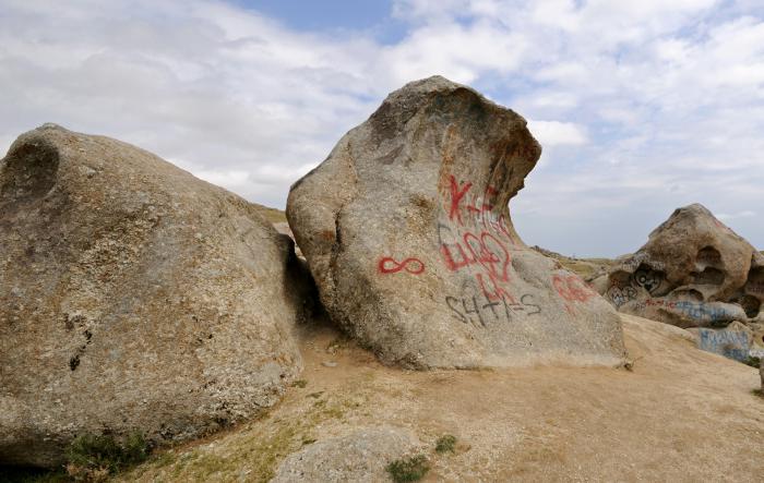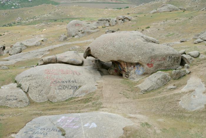 И это нам еще не слишком затрудняли жизнь другие туристы. По моим сведениям тут целыми автобусами останавливаются. И следы этих остановок сильно удручают. Практически все привлекающие глаз каменюки татуированы варварами до невозможности. Не знаю, что должно быть в голове, чтобы вот так взять и испортить природную красоту, причуду, задумку – неважно как это называть. Эти особи вероятно просто живут ни о чем не задумываясь, даже не ощущая, что вокруг есть большой и замечательный мир. Главное нагадить где-нибудь, как собаки ногу задирают, чтоб другая подобная особь почуяла, оценила и тоже отметилась. Жуть.