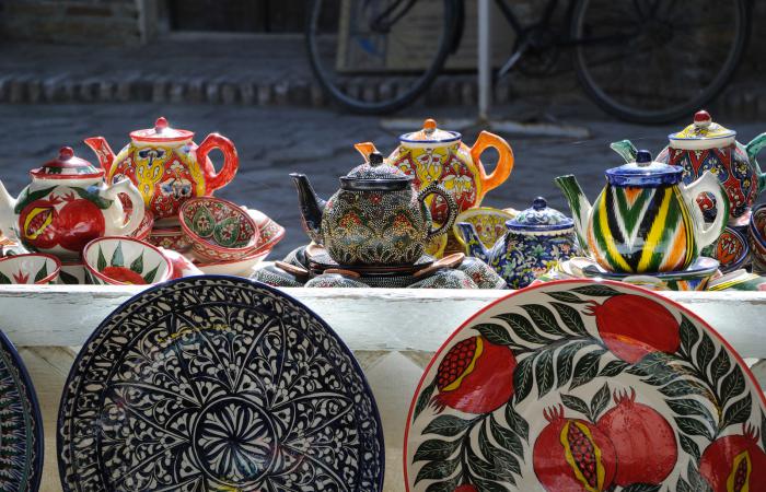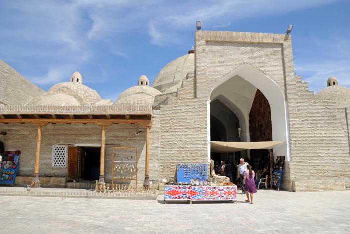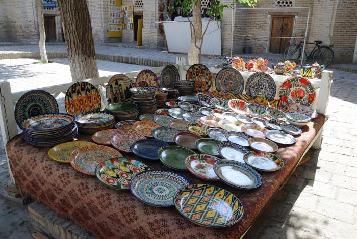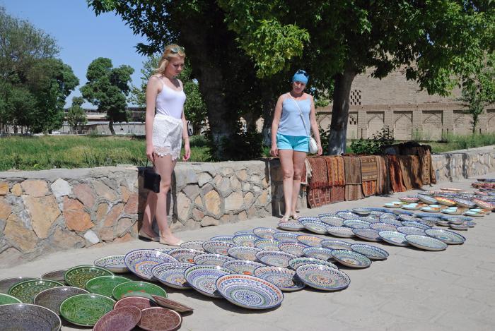 Пока разглядывали, охали, да ахали на красоту, слово за слово разговорились с прохожим, который сперва вместе с продавцом начали объяснять нам символику форм и рисунков блюд, периодически поправляя друг друга, после чего он объявил нас земляками, ибо родился еще в Союзе, как и многие из нас, и начал зазывать нас в гости, при этом предлагая сперва заглянуть ему в паспорт. У него сегодня оказался день рождения. Был обещан традиционный плов, сладости и прочий набор кушаний. Заманчиво, но тогда пары дней в Бухаре нам не хватит.