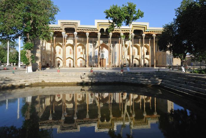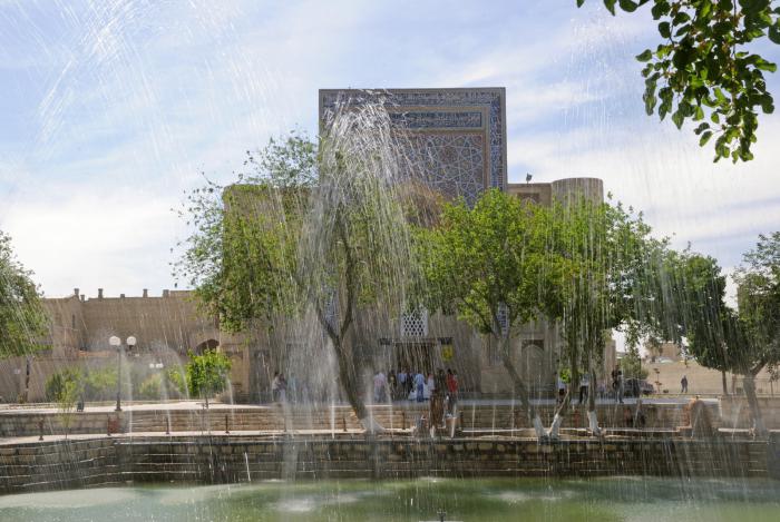 Вот здесь в бассейне вода присутствует, а в подобном же возле мавзолея Саманидов почему-то сухо.