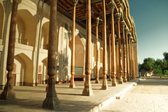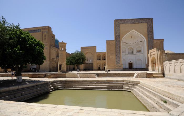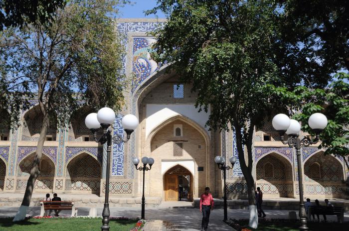 Оно считается наиболее почитаемым духовным исламским заведением на постсоветском пространстве. Вполне себе действующее. Видимо поэтому на территорию обычным туристам прохода нет. При сильном желании можно сквозь решетку наблюдать неспешную жизнь тамошних студентов.