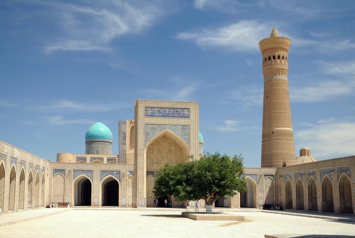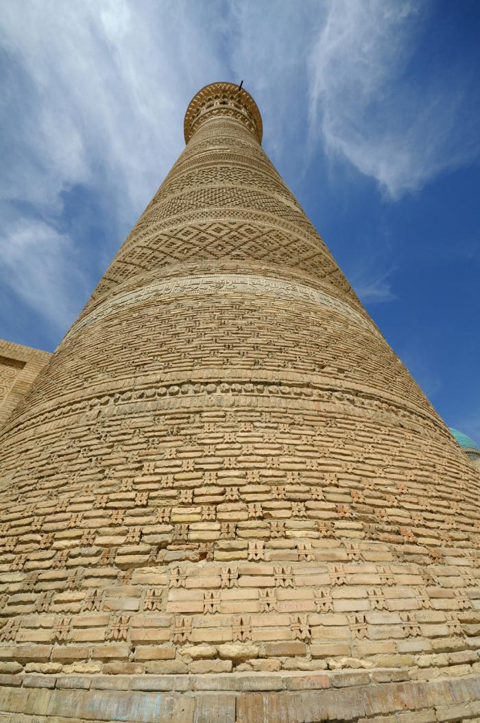 В первую очередь в глаза бросается конечно же минарет Калян, что означает Великий. Построен в далеком 1127 году и является символом города. Виден издалека и, соответственно, в давние времена выполнял роль маяка для караванов.