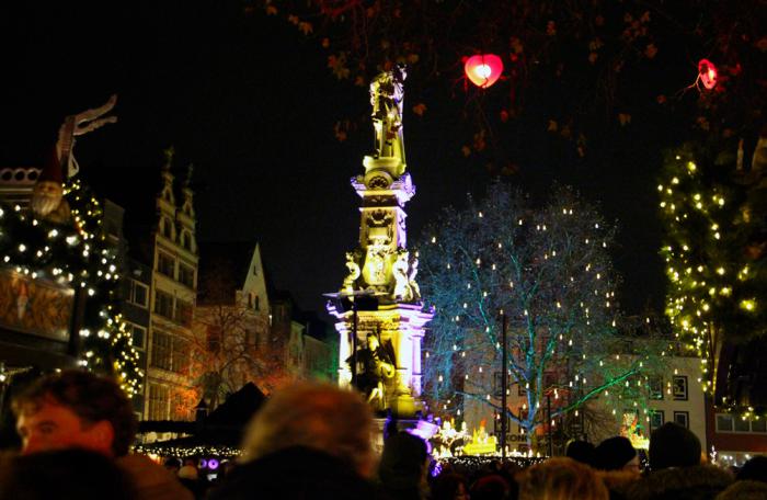 С Roncalliplatz мы плавно переместились на рождественский базар Alter Markt, раскинувшийся на площади перед ратушей:
