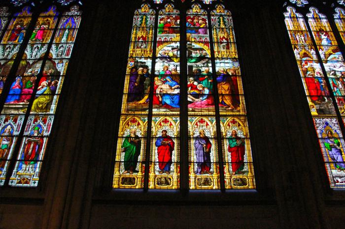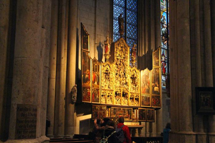 Перефразируя известное выражение К.С.Станиславского «Театр начинается с вешалки», можно с полной уверенностью сказать, что Кёльн начинается с собора. Именно его масштабная готика заполняет внимание гостей города, выходящих из железнодорожного вокзала. Кафедральный собор Святых Петра и Марии – главное здание города на Рейне, его символ, да и, пожалуй, один из главных символов всей Германии. Благодарение небесам, что пилоты союзной авиации во время войны выбрали исполинское здание храма в качестве ориентира при бомбардировочных налётах, это и спасло его от разрушения. И теперь этим потрясающим архитектурным шедевром наслаждаются туристы из всех уголков земного шара. Помню своё первое впечатление от посещения собора (было это в 2009 году): восхищение и восторг! С тех пор я побывал в Кёльне множество раз, но до сих пор восхищаюсь уникальной архитектурой собора как впервые. Вот и в этот раз пойти мимо кафедрала мы не смогли, ещё и потому, что супруга моя в Кёльн попала впервые: