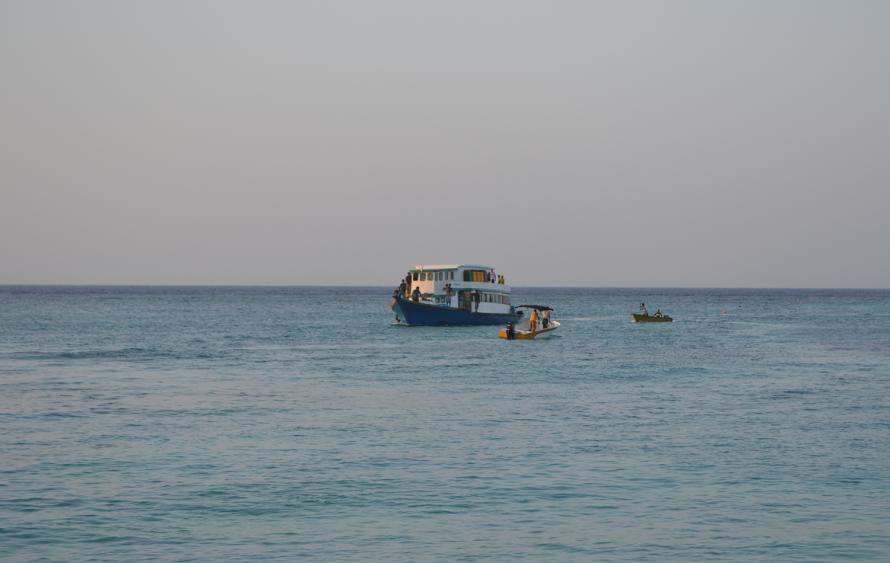Пара наших девчонок уплыли достаточно далеко от берега, почти к границе лагуны, к открытому океану. Одна из них уже пятый раз на Мальдивах, и в курсе здешнего отношения местных. Вторая туристка первый раз, и немного устала, а когда увидела сколько плыть назад совсем погрустнела. Первая недолго думая помахала и крикнула местным на лодках, что были неподалеку. К ним тут же подплыли, помогли залезть в лодку, доставили на берег.