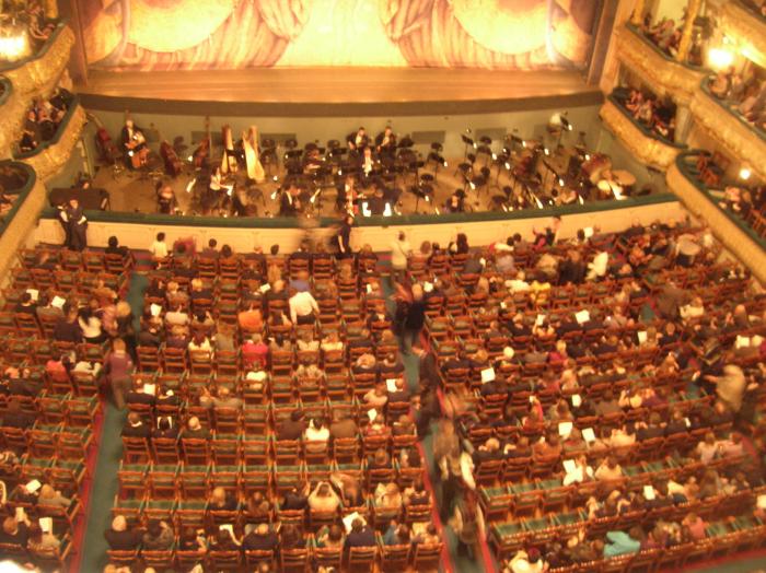 Еще на подходе к театру начали спрашивать лишний билетик. Мега-аншлаг сегодня! В этот раз у меня была люстра, то есть 3 –й ярус (раёк, как называли его в старину), но 1-ый ряд. Скажу Вам нет лучше мест, чем 1 ряд 3-го яруса для созерцания архитектоники (в Яндекс кто не воткнул в термин) танца. И цена смешная для такого аншлагового перфоманса, 480 руб. Партер, к слову 3600. А какой-нибудь 2-й ярус, в ложах билеты по 1500 рублей, но с многих мест ничего не видно. А возьмем боковые ложи хотя бы бенуара, бельэтажа, особенно если не первый ряд. Стоя смотреть приходится. Но это так, к слову.