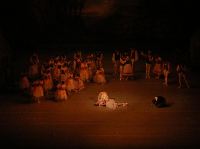 Итак… Жил-был один юноша-мажор, сын олигарха, граф, выпускник Оксфорда и звали его Альберт. Как то Альберт со своей подружкой-невестой, ясен перец, тоже дочкой непростой, папа её был зампредсовмина и газовый барон, а также их вся кодла отправились в свой нуворишский замок в условной, скажем, Рублевке-Барвихе. Но вблизи их олигархических владений, каким то чудом сохранилась посконная деревушка, где жила со своей мамкой наивная, простодушная пейзаночка-доярка… Жизель. Мажор тот, ну помните, Альберт, любил бухнув и пыхнув, снять с себя часы Картье, костюмчик от Дольче с Габаной, накинуть на себя сермягу домотканую разводить местных девушек на… с**с. Так и попалась наша Жизель на разводилово гламуренка. Влюбилась она по уши, по макушку, по носоглотку и до самых глазных яблок. Но местный лесовод, с ником Ганс, безумно влюбленный в наивную пейзанку, пытается предупредить грехопопадание Жизели. Он её убеждает, что она лохушка и плохо кончит. Жизель не внемлет влюбленному в неё сердцу, тут еще мажор наехал на лесничего, грозя того замочить. Ничего не остается Гансу, как найти доказательства, явки и пароли оборотня в лаптях. И он их находит. В заброшенной хибаре обнаружил часы, костюм, трусы со стразами, а в реале шпагу, гламурного подонка и предъяву тут же устроил. Альберт попытался зажмурить работягу навеки вечные, но тот заорал благим матом и на крик явилась вся кодла графа и его невеста. Вот тут и наша пейзанка прозрела и как девушка порядочная, искренняя и целомудренная она решила умереть, предварительно сойдя с ума. Что с успехом было сделано. Занавес. 1 акт закончился.