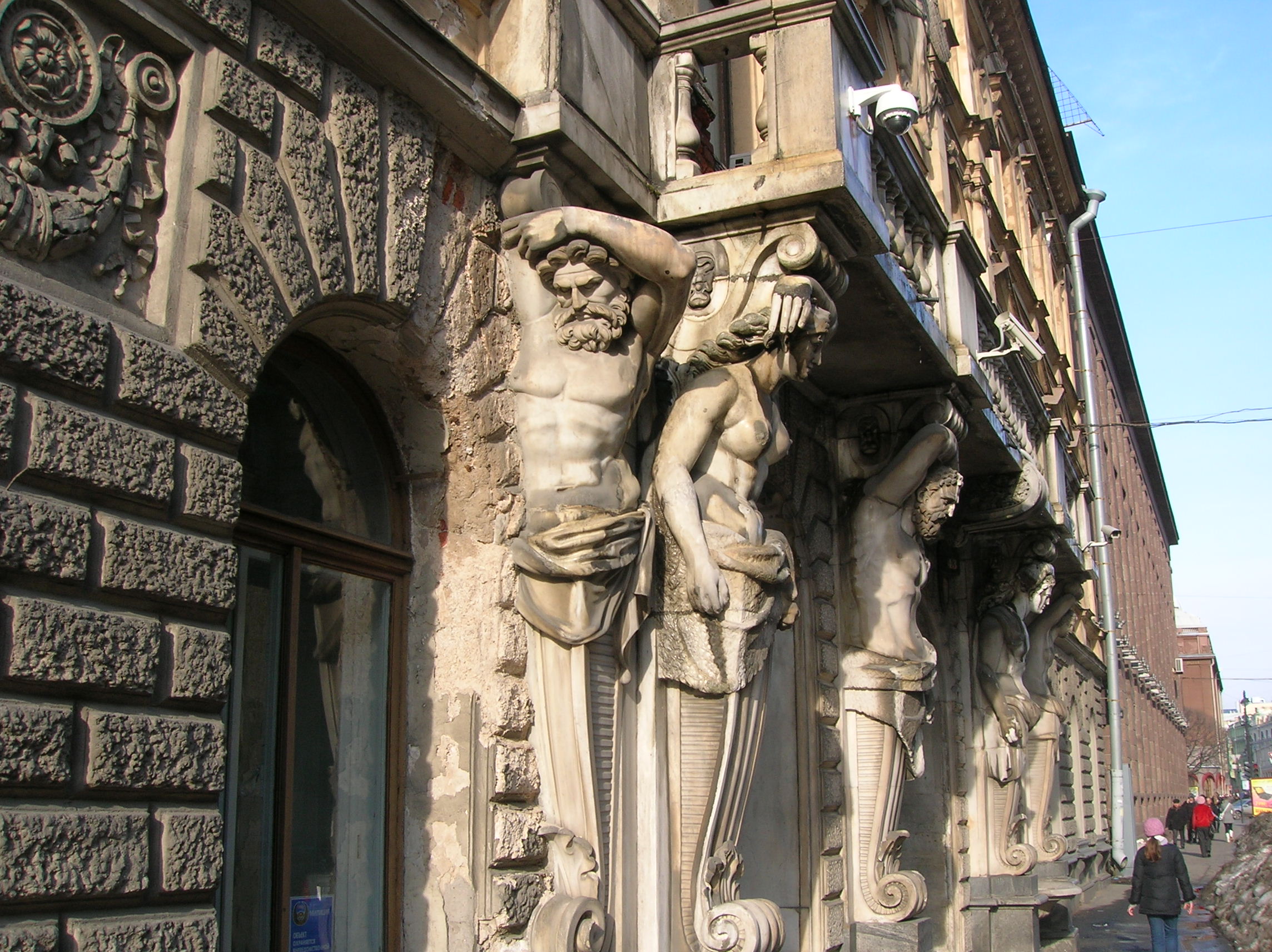 Конечно обращают на себя внимание два дома, окончательно спроектированные и перестроенные Монферраном – особняк Демидова. Сейчас это Дом Композиторов. Ресторан «Тепло», в котором я никогда не был, но судя по рассказам на форуме, очень даже экселент, находится в Доме Композиторов.