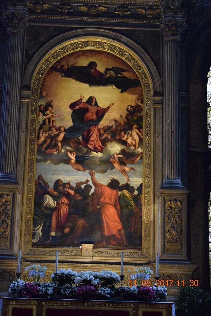 В главном алтаре картина Тициана «Вознесение Девы Марии».
