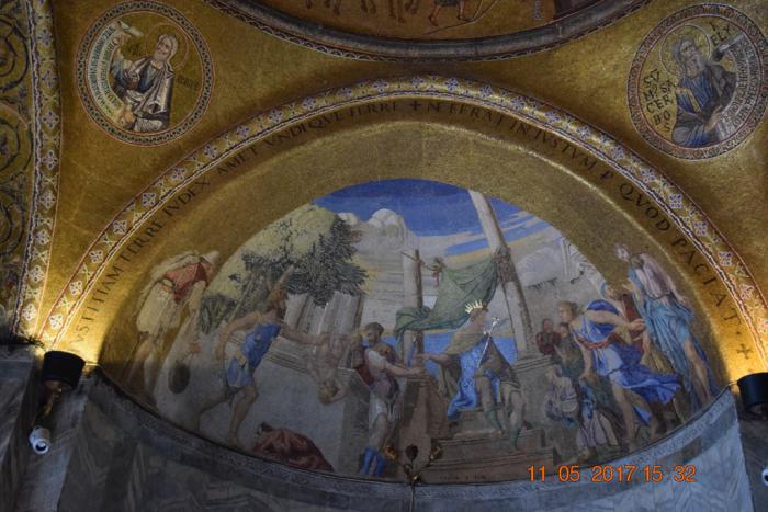 В арке над левым входом мозаика 17 века как раз повествует о прохождении венецианцами мавританской таможни.