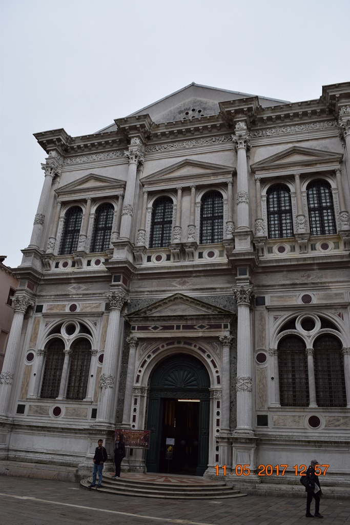 Рядом с церковью здание Скуола Сан-Рокко. Здание построено на деньги братства (скуола) Сан-Рокко во второй половине 16 века.