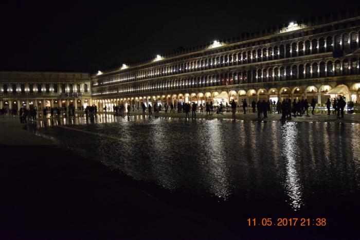 Вечером второго дня пошли на площадь Святого Марка прогуляться и увидели наводнение.