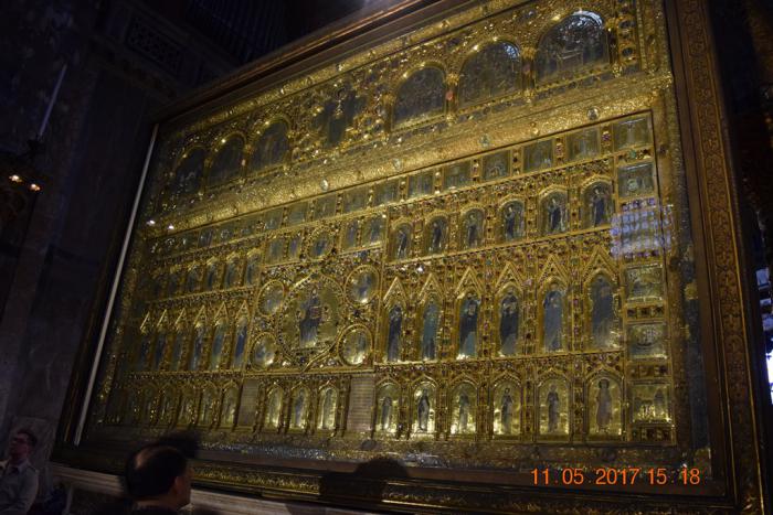 За Золотым алтарём (Pala d'Oro), украшенным двумя тысячами изумрудов, рубинов, сапфиров и других драгоценных камней,
