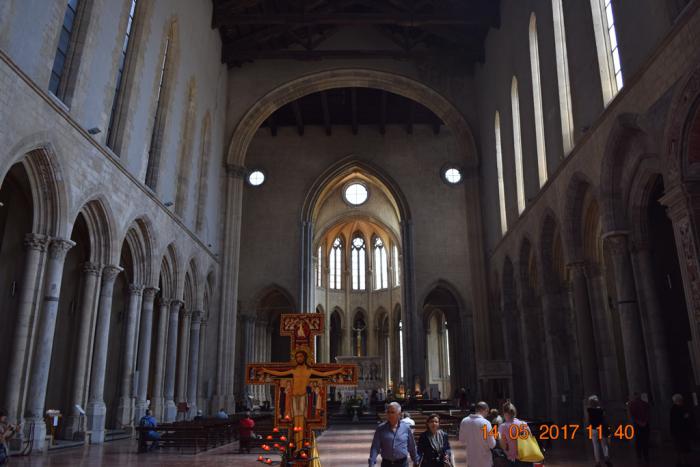 Почти напротив церкви Святого Григория располагается церковь Святого Лаврентия (Basilica di San Lorenzo Maggiore). Эту церковь начали строить в 1235 году францисканские монахи, конечно же, в духе времени, в готическом стиле. Несмотря на дальнейшие перестройки тот дух сохранился. Насколько интерьеры этой церкви отличаются от предыдущей!