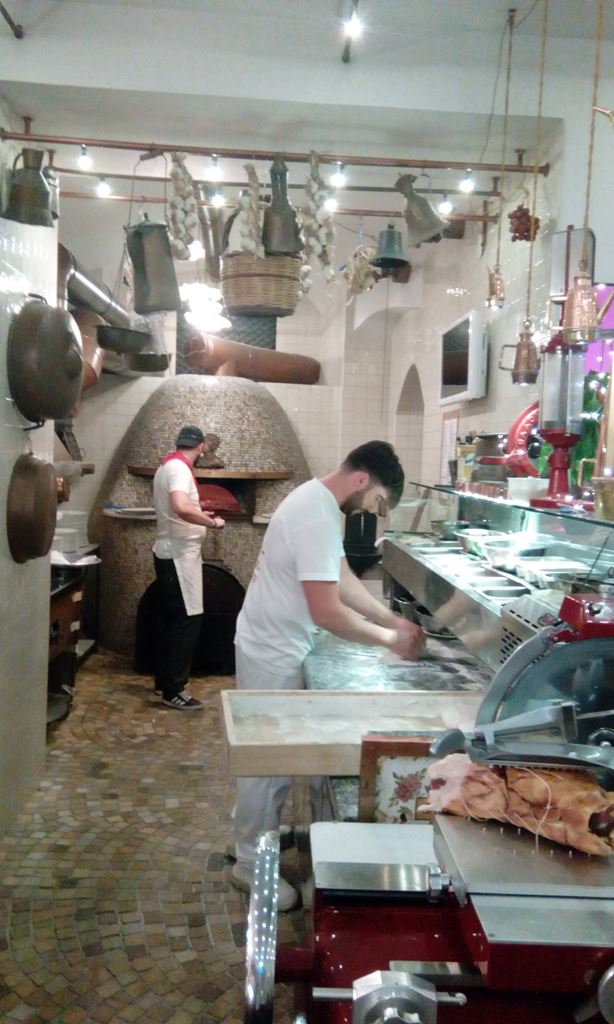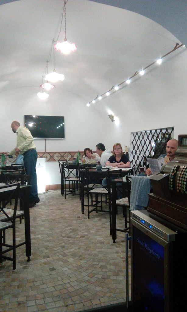 Когда мы подошли, освобождался столик, поэтому в очереди стоять не пришлось. Ресторанчик очень понравился. Персонал внимательный, обслуживают быстро, готовят вкусно. Не дорого: жаренные на гриле овощи (баклажаны, перец и грибы), просто жаренная рыба, креветки и барабулька во фритюре, литр белого вина, два кофе и вода – 42 евро вместе с коперто. Для центра Неаполя оччччень демократично. Да ещё и хозяин еретик, сиесту не соблюдает, на наше счастье.