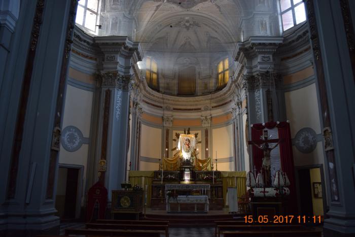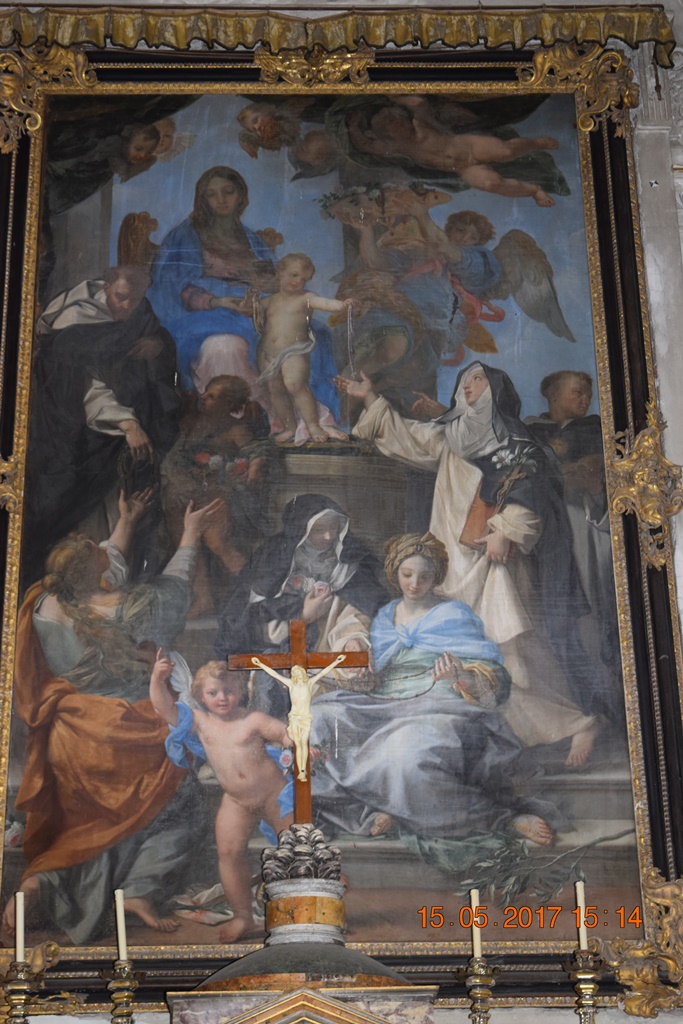 В главном алтаре полотно Карло Маратто, изображающее Мадонну Розарио.