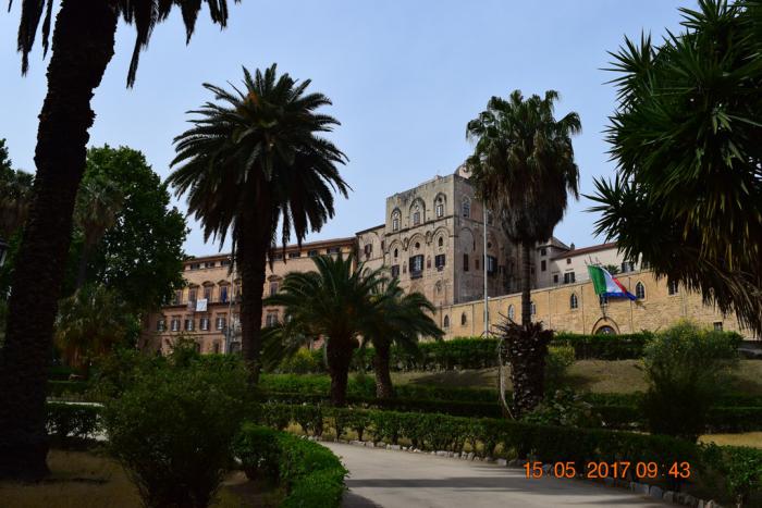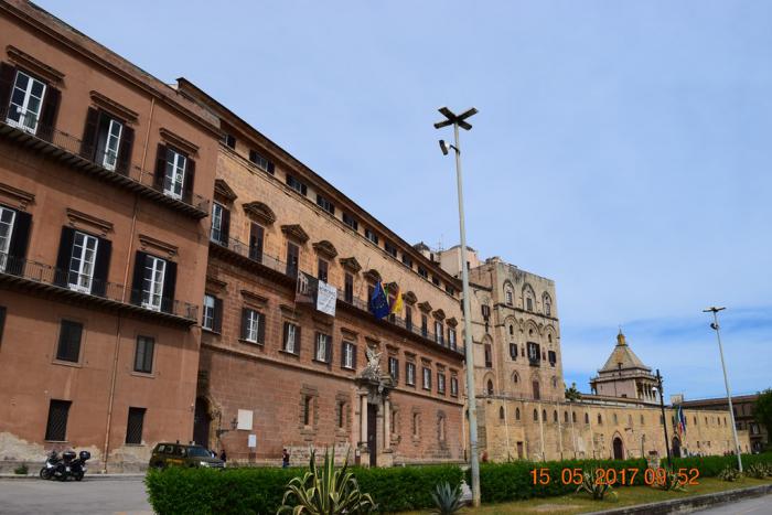 а вот на месте дворца было финикийское поселение ещё с 8 века до нашей эры. В шестом веке нашей эры, во время византийского периода правления, был построен дворец, в котором жил префект. После арабского завоевания здесь был дворец эмиров. Когда арабов изгнали норманны, дворец стал королевской резиденций. А дальше были швабский, анжуйский, арагонский, испанский периоды и каждый правитель перестраивал дворец под себя. С 1947 года во дворце заседает сицилийский парламент.