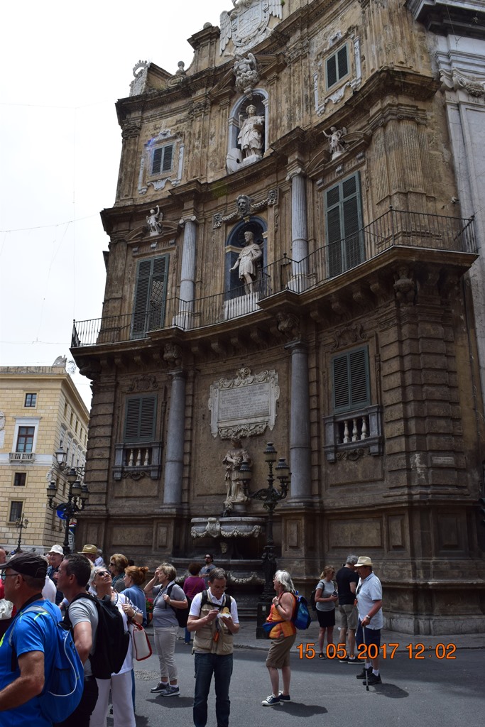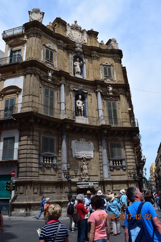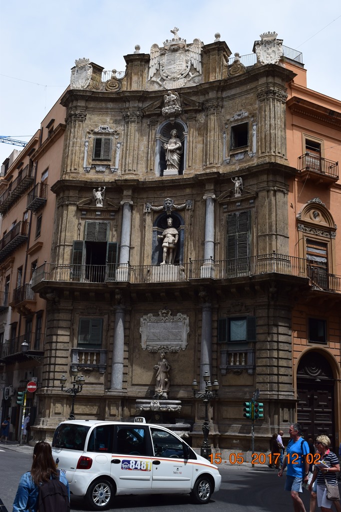 На пересечении двух главных улиц города Македа и Виктора Эммануила площадь Четырёх углов (Quattro Canti). Можно сказать «пуп Палермо».