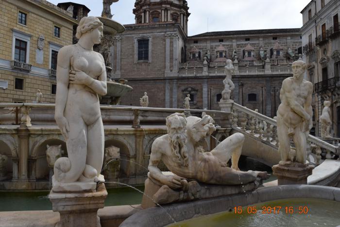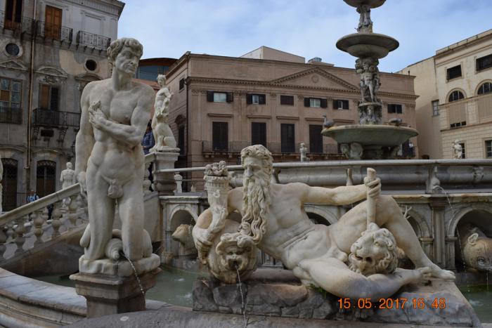 В пяти минутах ходьбы от рынка Вуччериа находится один из символов Палермо – фонтан Претория (Fontana Pretoria).