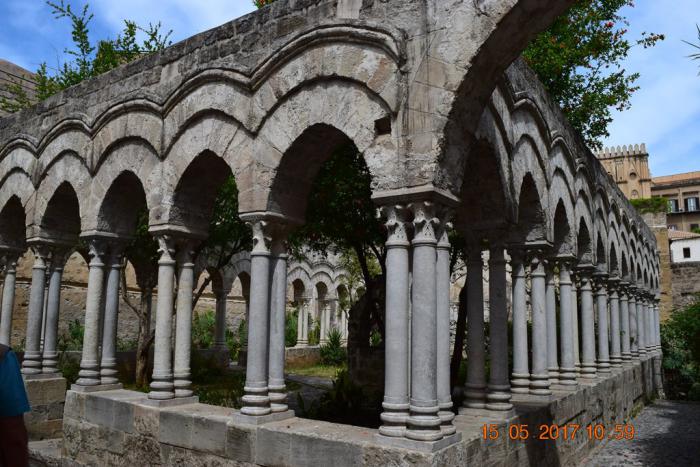 Через дорогу от дворца находятся остатки бенедиктинского монастыря Святого Иоанна отшельника (San Giovanni degli Eremiti). Первый монастырь на этом месте в 581 году основали Святой Григорий Великий и его мать Святая Сильвия. Во времена арабского владычества здесь была, как водится, мечеть. После завоевания Сицилии норманнами, в 1132 году Роджер Второй даёт поручение провести капитальную реконструкцию монастыря. Сейчас здесь музей. Входной билет 6 евро. Но, если честно, смотреть там на 6 евро нечего.