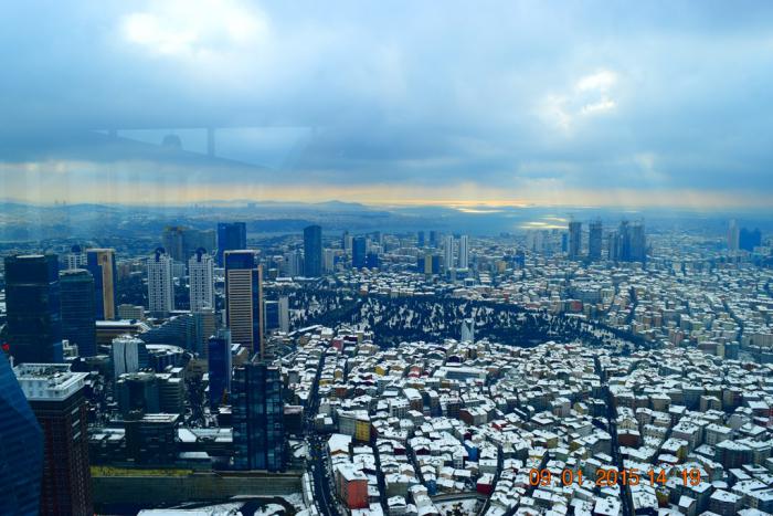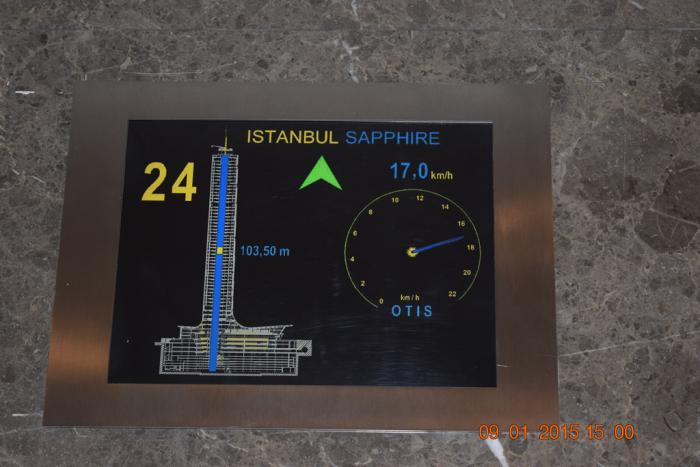 Вещи разрешили оставить в отеле до вечера, и мы поехали к небоскрёбу «Сапфир», что бы с его смотровой площадки посмотреть на Стамбул. Это самое высокое здание Турции, а смотровая площадка находится на 54 этаже на высоте 236 метров. «Сапфир» находится рядом со станцией метро 4.Levent зелёной ветки метро.