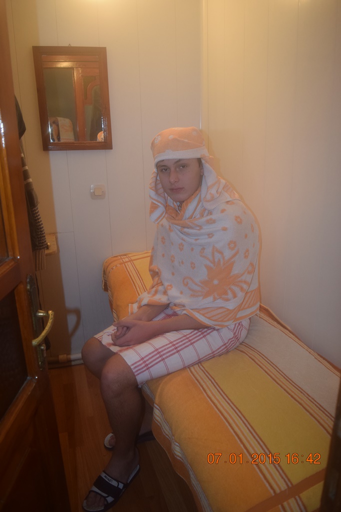 После мытья укладывают на горячий постамент в центре зала, мылят пеной из мешка, делают массаж. Массаж, нужно отметить, делают без особого энтузиазма, но всё равно хорошо. После этого, если продолжать греться желания нет, закутывают в три полотенца особым способом