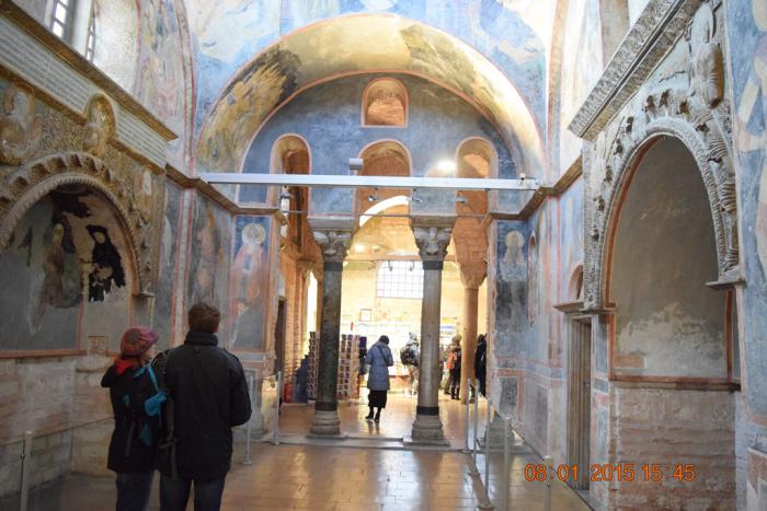 После падения Константиновполя из церкви сделали мечеть, а мозаики и фрески были замазаны штукатуркой. Может благодаря этому они так хорошо сохранились.