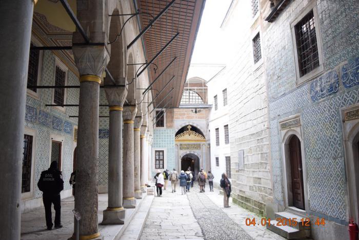Из гарема через вон те двери в углу попадаем в третий двор, так называемый внутренний двор, куда даже великий везир мог попасть только после высочайшего позволения султана. И, конечно же, только через «Ворота блаженства».