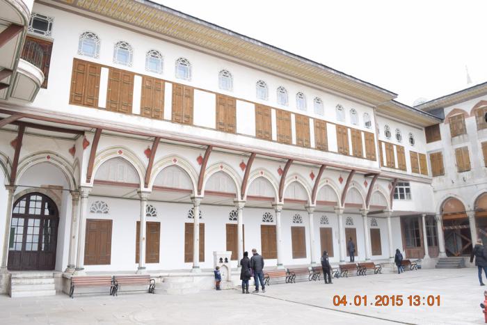По периметру двора в палатах сейчас экспонируются одежда, сокровища, оружие, мусульманские святыни.