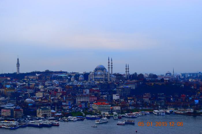 А здесь левее чайки мечеть Сулеймание, метромост и мост Ататюрк.