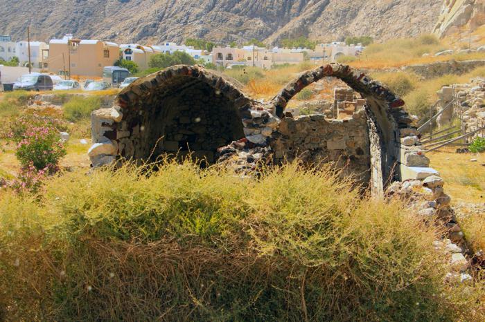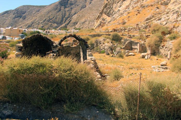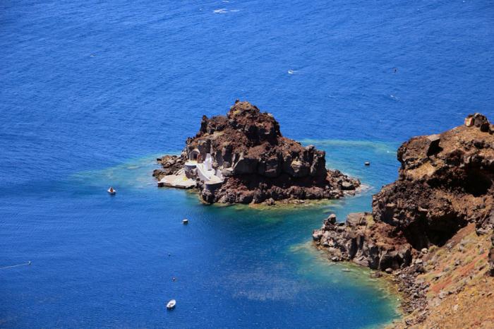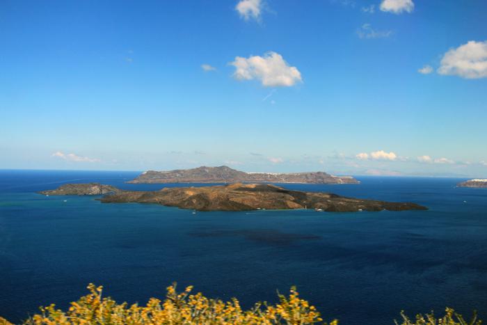 Эти два острова, плюс Санторини, Фирасия (Thirasia) и Аспронизи (Aspronisi) являются сохранившейся частью бывшего острова Стронгили (Strongili), что в переводе на русский означает «Круглый». Считается, что именно такую форму имел в далёкие-предалёкие времена предшественник Санторини. В центре его находился вулкан, который зрел до поры, до времени, словно фурункул, а затем бабахнул, да так «удачно», что разрушил сам себя. На месте взорвавшегося вулкана образовалась обширная кальдера, заполнившаяся морской водой, а её края очертили скалистые остатки острова. От мощнейшего землетрясения образовалась гигантская цунами (до 200 метров высотой!), «прополоскавшая» соседние острова, и в первую очередь процветающий Крит. Как считают некоторые историки, последствия этого извержения привели к закату развитой минойской цивилизации.
