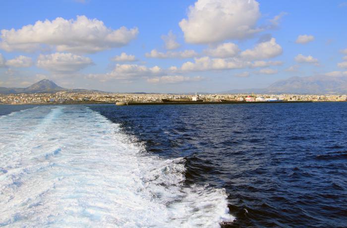 Следующую половину первого часа путешествия я провёл на верхней палубе, разглядывая удаляющийся Крит и морские просторы с открывающимися частичками суши:
