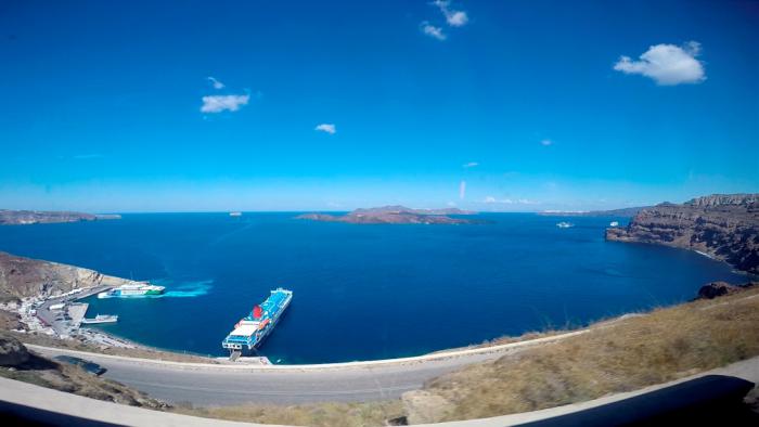 Пока ожидали возвращения всех экскурсантов, стрелки часов перешагнули рубеж 14:00 — времени отъезда в Фиру. Реальность выполнения дневной программы явно попадала под угрозу — обратный паром в 17:00.