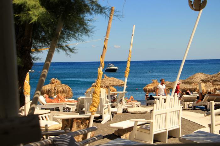 По плану нам предстоял переезд на противоположную сторону Санторини, к чёрному пляжу Перисса (Perissa Black Sand Beach). Однако, несмотря на уговоры гида не опаздывать, отъезд из Фиры, как и в первом случае, задержался минут на десять. Позже оказалось, что кто-то не успел покушать, кто-то – искупаться, кто-то… А в итоге – крайним оказался экскурсовод. Соглашусь — поездка получилась бестолковой, скомканной, гид — слабо подготовленным и, откровенно говоря, равнодушным, но предъявлять претензии надо было в первую очередь к себе. Об этом я и сказал в конце поездки, когда посыпались упрёки в адрес Елены.
