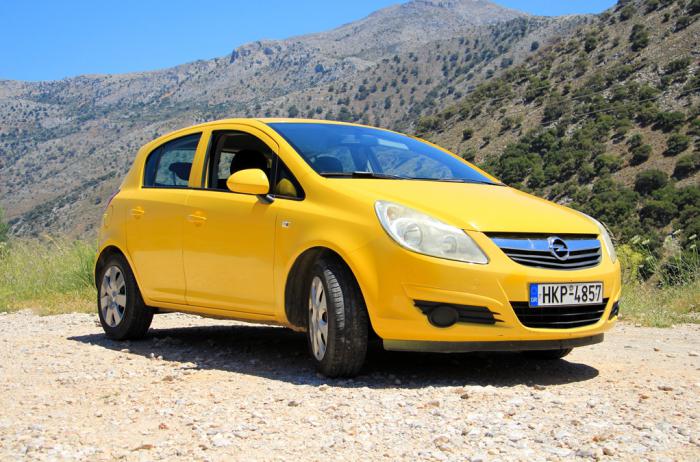 Позавтракав, и забрав у администратора ключи от машины, мы поспешили на парковку – где-то там нас ожидала обещанная Opel Corsa. Ярко-жёлтую, сияющую намытым кузовом машинку, мы увидели сразу. По установленной традиции, она тут-же получила имя – «Жёпелёк» (здесь не стоит искать ничего предосудительного, всё просто — ЖЁлтый оПЕЛЁК, с расхожим фривольным словосочетанием имя не имеет ничего общего):