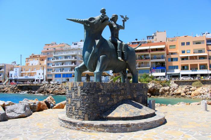 Разглядывая оснастку парусной яхты, в памяти всколыхнулись детские мечты о морских путешествиях на далёкий остров сокровищ, навеянные фильмами и, в первую очередь, книгами Стивенсона, Верна и Сабатини. Ну кто из мальчишек не грезил подобными фантазиями? Сейчас, бывая на островах (мечты сбываются!) понимаешь, что настоящие сокровища — это не деньги, золото или алмазы, а нечто большее – наличие родного человека рядом, спокойствие души, впечатления наконец. Но пиастры далёких островов, иногда, всё-же напоминают о лучшей поре человеческой жизни. На самом краешке портового причала установлена скульптура «Похищение Европы»: