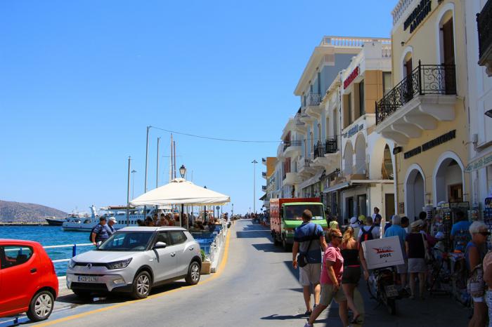 Небольшой городок в восточной части Крита называют одной из жемчужин острова. Он раскинулся на западном побережье залива Mirabello. Впечатлённые прекрасным видом на залив, венецианцы и дали ему соответствующее название. Позже на берегу залива была возведена одноимённая крепость. В Сети есть информация, что залив получил своё романтичное название по имени крепости, но мне кажется было иначе. Тем более, что залив до сих пор радует своими прекрасными видами, а крепости – увы, уже не существует. После последнего её разрушения, предприимчивые греки растащили останки на постройку домов. Главной достопримечательностью города считается, и по праву, озеро Voulismeni, в чём мы смогли убедиться лично. Основная транспортная артерия Крита Е75, протянувшаяся вдоль его северного побережья с востока на запад, или, если угодно – наоборот, открывает потрясающие виды практически на всём своём протяжении. Поэтому три часа, затраченные на 130 км живописной дороги, где хочется остановиться то в одном месте, то в другом, чтобы полюбоваться очаровательным сочетанием земли и моря, скажу я вам — не самый плохой результат. Более того — морская прохлада, врывающаяся в открытые окна, избавила нас от необходимости использования кондиционера и сделала наше путешествие весьма и весьма комфортным. Парковку выбрали через iPad в самом сердце города, в двух шагах от его лазурной лагуны. При оформлении аренды Людмила, отвечая на вопросы по особенностям соблюдения ПДД на островных дорогах, предупредила, что к соблюдению правил парковки надо подходить ответственно, поскольку штрафы за их нарушение немаленькие – от 40€. Дешевле — заплатить. И коль я уж коснулся Правил дорожного движения, остановлюсь на этой теме чуть подробнее. Полицейских на дорогах мы встречали нечасто – пару раз в патруле на А75, на других дорогах — ни разу. Тем не менее — из практики: