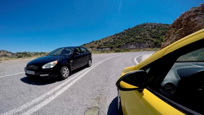 Вырвавшись на дорожный простор из симпатичного, но душного, Айоса, я выставил на iPadе следующую точку назначения – Диктейская пещера. Согласно древнегреческой мифологии в ней родился Зевс, а побывать на Крите и не посетить место рождения верховного «олимпийца» по меньшей мере, неуважительно. Надо сказать, что iPad, выбранный в качестве альтернативной замены навигатору, прекрасно справился с обязанностями проводника. Подобный опыт мы уже использовали два года назад в европейском турне, и тогда «планшетник» практически полноценно заменил выбывшие из строя навигаторы. Не подвёл гаджет и в этот раз, безошибочно прокладывая необходимый маршрут по кратчайшему пути. Порой настолько кратчайшему, что приходилось вносить личные поправки в составленный им маршрут, принося расстояние в жертву качеству дорожного покрытия. Выехав из Агиос-Николаоса в обратном направлении, километров десять спустя наш «маршрутизатор» посоветовал свернуть с, условно называя, федеральной трассы А75 на примыкающую дорогу. Причём дорогой это ответвление можно было назвать с большой натяжкой — съезд был настолько неприметный, что у меня это получилось только с третьей попытки. Узкая тропка «пророссийского» покрытия вначале вызвала сомнение в правильности выбранного навигатором направления, но вскоре мне стало стыдно за проявленное недоверие к третьему, можно сказать, члену экипажа – непримечательный отрезок явился лишь, своего рода перемычкой, соединяющей «федералку» и региональную EO Neapolis — Chersonisou. Качеством «регионалка» была не хуже, но превосходила статусную «федералку» в зрелищности. А вот, что малоприятно объединяет островные дороги, так это отсутствие заведений
