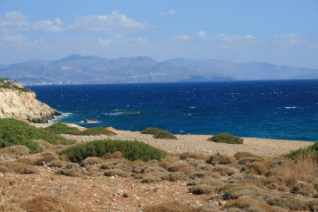 Особенность пребывания на южном берегу Крита в июле заключается в очень сильных ветрах, дующих с берега, с гор. Конечно, мы читали об этих ветрах в интернете и восприняли их как малосущественную проблему. Особенность этого ветра в том, что он не затихает и не прекращается много дней подряд. Он делает отдых весьма специфическим. Нельзя поставить зонтик, положить одежду на лежак, поиграть в мяч — все это моментально сдувается в море.